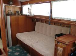 lights create a warm, cozy feeling. Large dinette to port and fold up back
