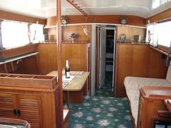 lights create a warm, cozy feeling. Large dinette to port and fold up back