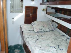 starboard and private entry into head. Fold-out step to get up into bunk plus
